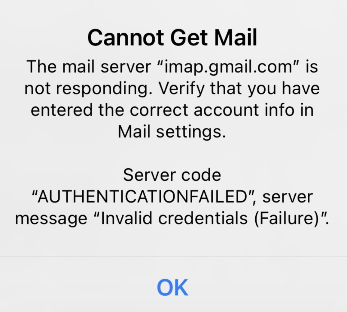 All of a sudden my Mail app has stopped working on my iPhone. Every time I try to check my inbox, I get an “authentication failed” message saying my login is wrong. I haven’t changed my password and the same account still works fine if I sign in through a browser.